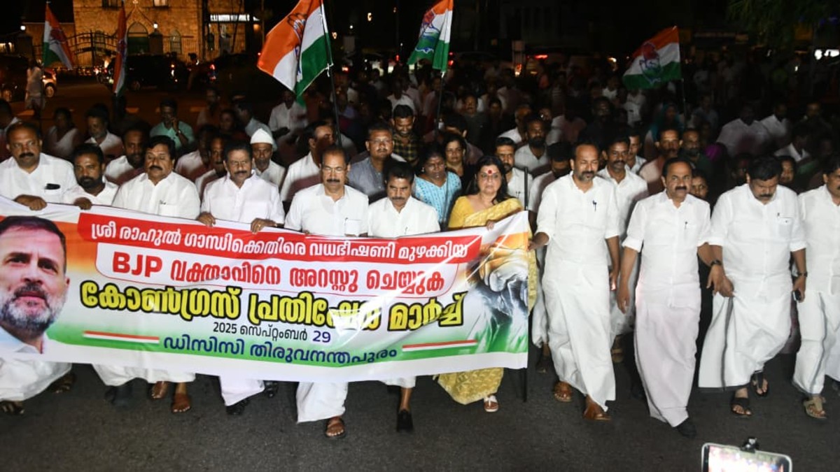 त्याच दिवशी संध्याकाळी, केरळ काँग्रेस नेत्यांनी त्रिशूरमधील भाजप पदाधिकाऱ्याला अटक करण्याची मागणी करत येथे निषेध मोर्चा काढला. “आम्ही या धमकीसमोर झुकणार नाही. या फॅसिस्ट शक्तींनी केलेली घोषणा राहुल गांधींच्या लोकप्रियतेचा पुरावा आहे. ही खालच्या दर्जाच्या स्थानिक पदाधिकाऱ्याची धमकी नाही. आम्ही याला एबीव्हीपीच्या विद्यार्थी संघटनेतून उदयास आलेल्या नेत्याकडून मिळालेली धमकी मानतो, जो त्यांच्या राज्य नेत्याच्या परवानगीने आला होता,” असे केरळचे विरोधी पक्षनेते व्ही.डी. सतीसन म्हणाले. त्यांनी आरोप केला, की पिनरयी विजयन यांच्या नेतृत्वाखालील राज्य सरकारने प्रिंटू यांना अटक करण्यास नकार देणे हे सत्ताधारी एलडीएफ आणि भाजपमधील कार्यरत संबंध दर्शवते. त्यांनी सांगितले की, केरळ सरकार “फॅसिस्टांना” पाठिंबा देत आहे, ज्यामुळे काँग्रेसला शहीद चौक ते राजभवन असा निषेध मोर्चा काढावा लागला. प्रिंटू यांना अटक न केल्यास काँग्रेस देशव्यापी निषेध करेल असेही सतीसन म्हणाले.